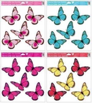 Dřevění motýli v pestrých barvách jsou určeni k vytváření dekorací.