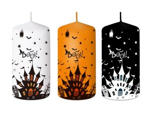Vonná svíčka ve skle s potiskem v designu Halloween.