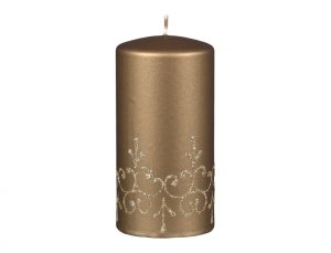 Svíčka ve tvaru válce s hladkým povrchem, v provedení metalický lesk.