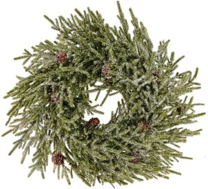 Vánoční věnec – dekoraceElegantní vánoční věnec v zelené barvě je vyroben z odolného materiálu PE/PP a nabízí realistický vzhled díky 97 špičkám s třemi různými povrchovými úpravami: přírodní, matná …