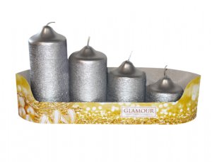 Adventní svíčka s metalickým perleťovým povrchem.