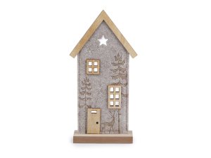 DEKORACE VÁNOČNÍ ZÁVĚSNÁ,DOMEČEK PLST LED 14,5 CM