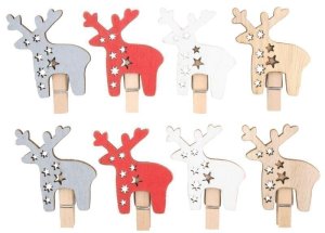 komponenty ke zdobeníHvězda dřevěná na kolíčku 4,5 cm, červená a bílá, 4 ks