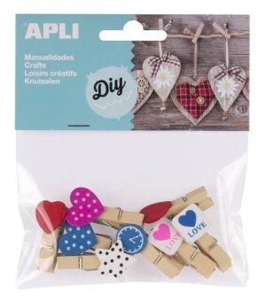 Dřevěné kolíčky s tvarovými doplňky v různobarevném provedení.
