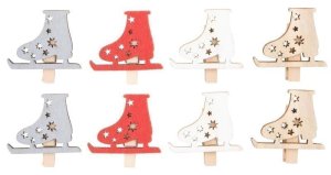 komponenty ke zdobeníVločka dřevěná na kolíčku 4,5 cm, červená a bílá, 4 ks