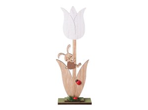 Dekorace dřevěná jarní květina v bílé a zelené barvě 100x310mm