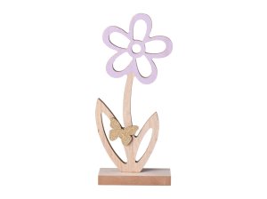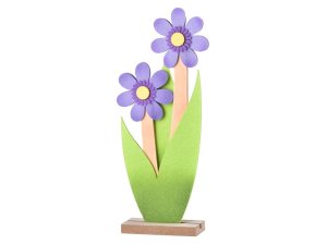 Dřevěná dekorace květiny s filcem v fialové barvě 120x45x295mm