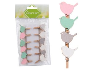 Dekorace dřevěný kolíček s ptáčkem mix 12ks 25x35 mm