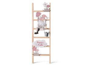 Dřevěná dekorace 160x600mm – žebřík s jarním skřítkem, přírodní vzhled pro jarní aranžmá.