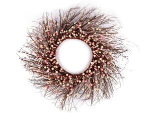 Věnec bohatě zdobený malými barevnými bobulemi vám zútulní interiér během jara a podzimu.