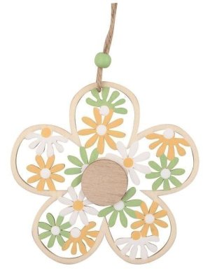 Dřevěný závěs kytička v barevném provedení, 110mm