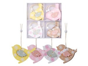 Dřevěný závěs ptáčci v krabičce v barevném provedení 8ks 90x65mm