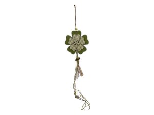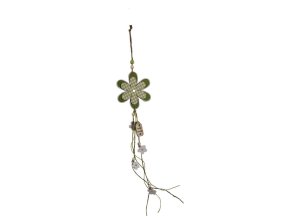 Dřevěný závěs kytička v zelené a bílé barvě 145mm