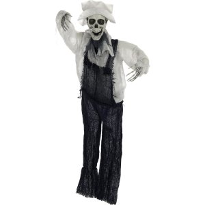 Kostlivec v lacláčích 2 LED Vydává zvuky Pohybuje se Baterky v balení Plast, textilie Rozměr: 70 x 11 x 90 cm Počet LED: 2 Barva světla: red Napájení: 3x AA součást balení Vnitřní použití Krytí: IP 20