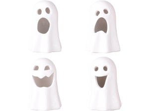 Bílá LED dekorace ducha pro podzimní a halloweenskou výzdobu.