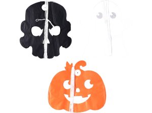 Skládaná papírová girlanda s duchy, lebkami a dýněmi.