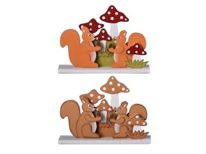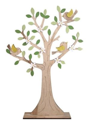 Závěsná dřevěná dekorace – strom s ježky v domečku 140×175 mm, přírodní s mixem barev.