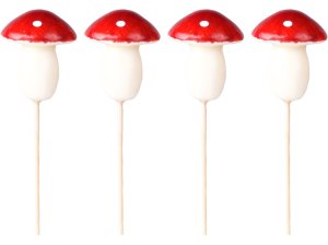Roztomilá červeno-bílá muchomůrka na špejli.