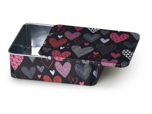 Dóza plechová Srdíčka hranatá v mixu barev 120 x 90 x 35 mm