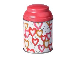 Dóza plechová Srdíčka kulatá v mixu barev 70 x 110 mm