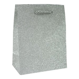 Dárková taška vyrobená z polypropylenové glitter folie, třpitivé provedení Rozměr: 11,5 x 14,5 x 6,5 cm