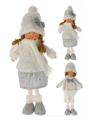 Dekorace DÍVKA / CHLAPEC STOJÍCÍ 49 cm, BÍ/STŘ mix. výška: 49 cm materiál: plyš, obličej polyston mix barev: bílá, stříbrná Veselá postava zachumlané postavičky jistě vykouzlí úsměv u dětí i dospělých …