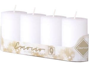 Lesklé stříbrné adventní svíčky ve tvaru válce setříděné dle výšky.
