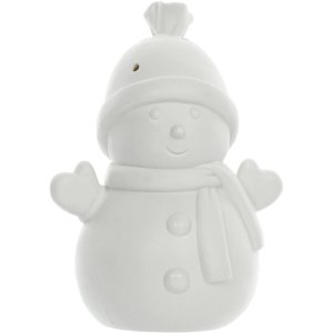 Porcelánový sněhulák s LED světýlkem Výška sněhuláka 15,2 cm Počet LED: 1 Barva světla: teplá bílá Bílý porcelán