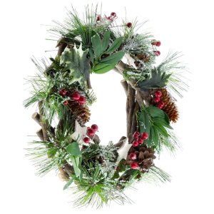 Vánoční věněc z větviček a umělého chvojí 20 LED Barva světla: teplá bílá Pouze pro vnitřní použití Rozměry: 30*8cm Krytí: IP 20 Typ baterií: 3xAA Baterie nejsou součástí balení