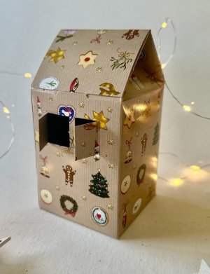 Be Nice EKO originální krabička ve tvaru domečku určená k balení vánočního cukroví, malého dárku či k dekoraci.