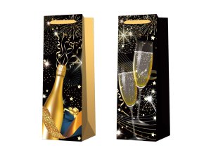 Taška na lahev 130x125x370 mm s motivem párty v černé a zlaté barvě mix