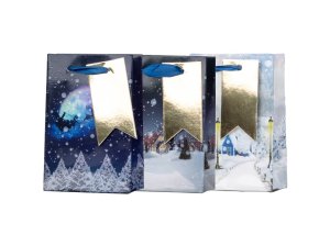 Dárková taška 100×150 mm – zimní krajina, barevný mix motivů.