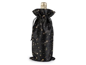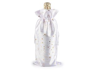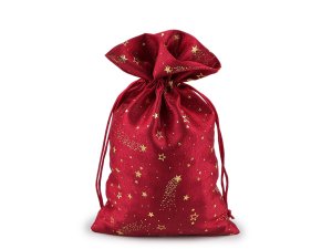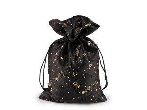 Vánoční dárkový pytlík ozdobený zlatým metalickým potiskem hvězdiček působí elegantně a luxusně.
