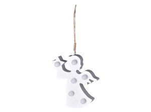 LED dekorace závěs – dřevěné jablko 110×135 mm, přírodní s mixem barev.