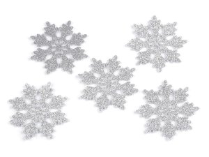 Filcové vločky zdobí z jedné strany třpytivé glitry.