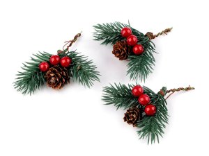 Umělá mini větvička s bobulemi a šiškami oživí podzimní a zimní aranžmá.