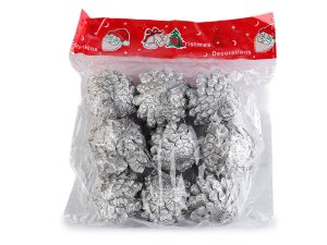 Dekorační šišky můžete díky poutku pověsit na stromeček, věnce nebo větvičky ve váze.
