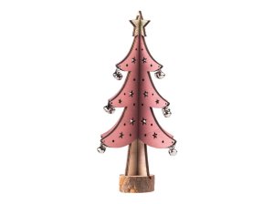 Dřevěná dekorace stromku s rolničkami – barevný a hravý doplněk pro zimní atmosféru.