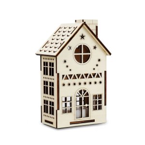 Dřevěné vyřezávané domečky jsou vhodné k celoročnímu aranžování.