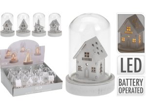 LED dřevěná dekorace 55×90 mm – domek, bílá, mix provedení.