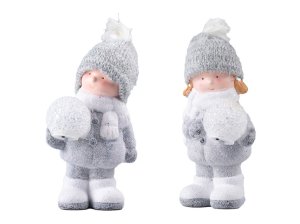 Keramická LED figurka dětí – dekorativní svítící doplněk pro vánoční a zimní atmosféru.