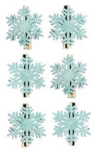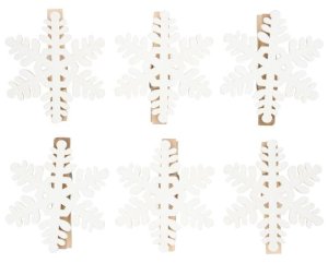 Dřevěné kolíčky s vločkou stylově ozdobí dárky, dárkové tašky nebo květináče a květinové vazby.