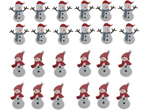 Dekorace v podobě sněhuláka s šálou a čepicí je vhodná pro období Vánoc a zimy.