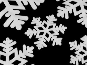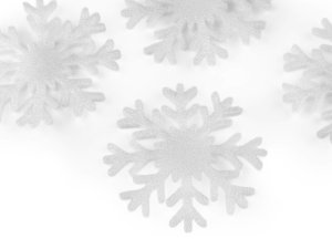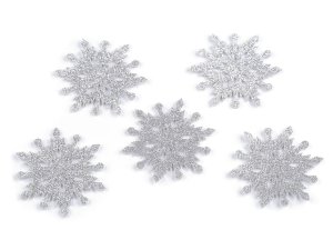 Filcové vločky zdobí z jedné strany třpytivé glitry.