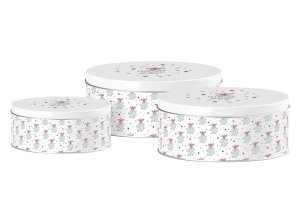 Vánoční sada 3 kulatých dóz Christmas Glory – barevný design pro praktické i dekorativní použití.