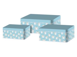 Hranatá sada 3 dóz Angel's Wings – modro-bílý motiv, praktická i dekorativní.