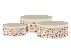 Vánoční sada 3 kulatých dóz Holly Jolly – červená a krémová pro sváteční atmosféru.