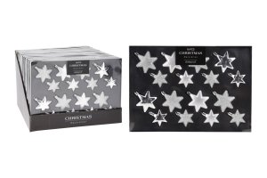 Ozdoba vánoční HVĚZDA (8 x 6 cm / 8 x 5 cm) STŘ mix (16 ks). rozměry: 8 x 6 cm / 8 x 5 cm barva: stříbrná mix odstínů v balení Vánoční sada obsahuje závěsné ozdoby ve tvaru hvězdy.