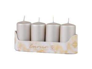 Sada čtyř válcových svíček Emocio o rozměru 50×90 mm v metalicky matném provedení.