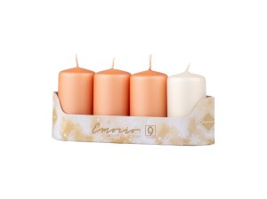 Set adventních svíček z nichž každá má jiný povrch (matný, lakovaný, metalický a brokátový).
